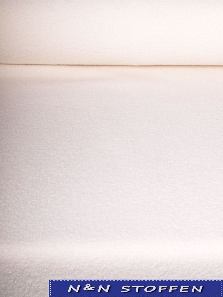 Gekookte wol in de kleur off white is gemaakt van 100% wol. Een mooie zachte stof om een lekker warm vest, een deken of trui van te maken.