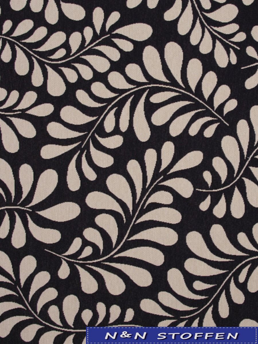 Gobelin stof Bladeren zwart is een stevige stof die geschikt is voor het maken van gordijnen en het bekleden van meubels. Het rapport van deze print is 64 cm hoog.