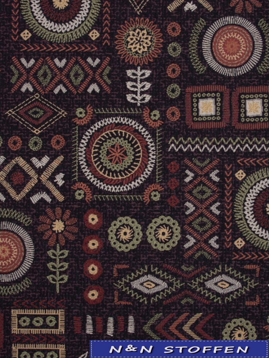 Gobelin stof Borduursel zwart is een stevige stof die geschikt is voor het maken van gordijnen en het bekleden van meubels. Het rapport van deze print is 64 cm hoog.