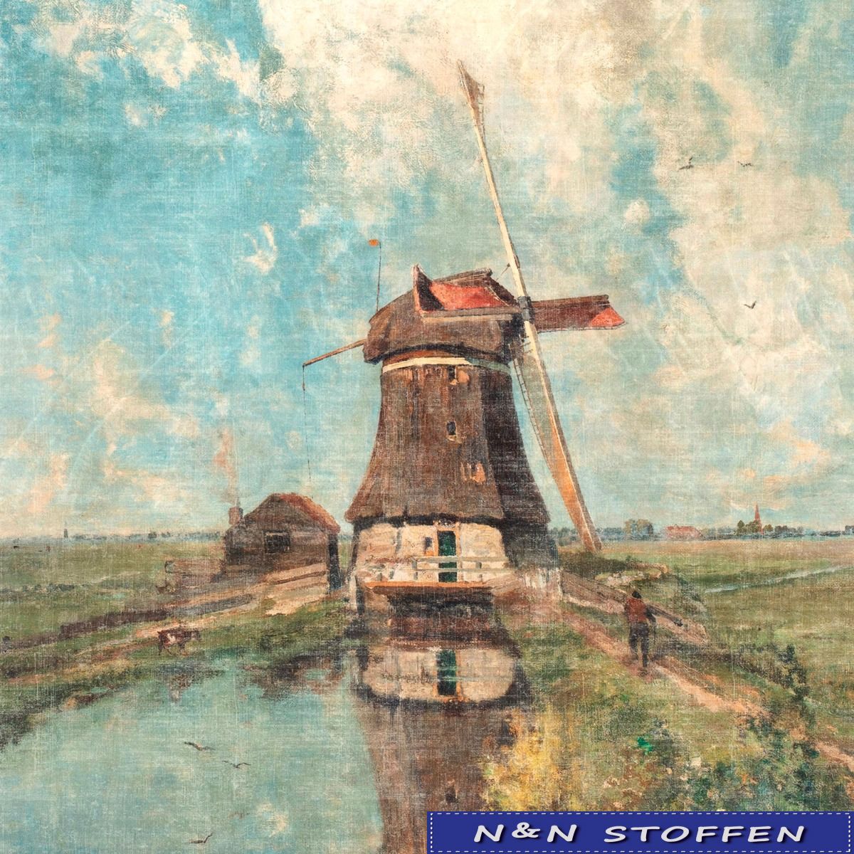 Paneelstof "Een molen aan de Poldervaart" is gebaseerd op het gelijknamige schilderij van Paul Joseph Constantin Gabriël. Het velours paneel is gemaakt van 100% polyester en heeft een afmeting van 110 hoog bij 70 breed. Het paneel wordt alleen per stuk verkocht. Wanneer u meerdere panelen besteld zullen deze als losse panelen geleverd worden.