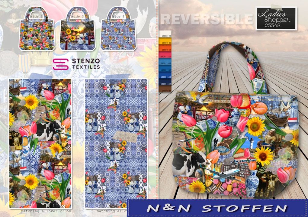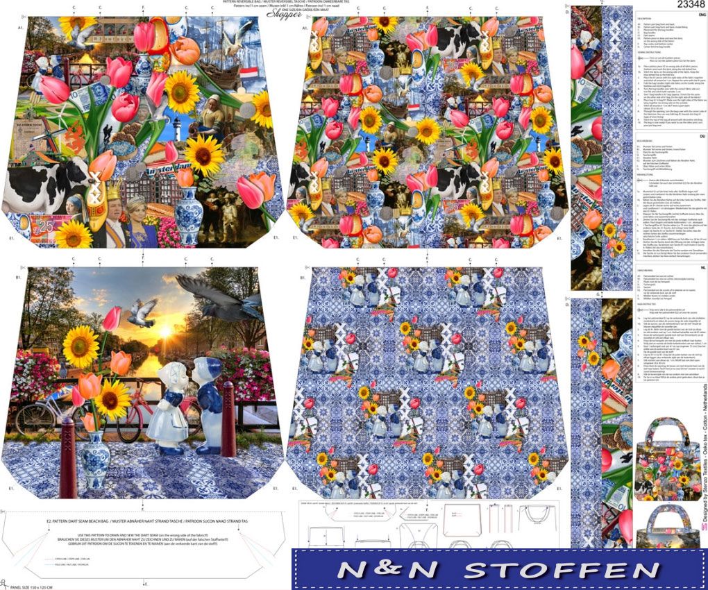 Paneelstof Tas Hollands Glorie. Met dit paneel kun je een keerbare grote tas maken. Leuk om cadeau te doen, of om voor jezelf te maken. De instructies zijn bijgevoegd met plaatjes, en tekst in Nederlands, Engels en Duits.