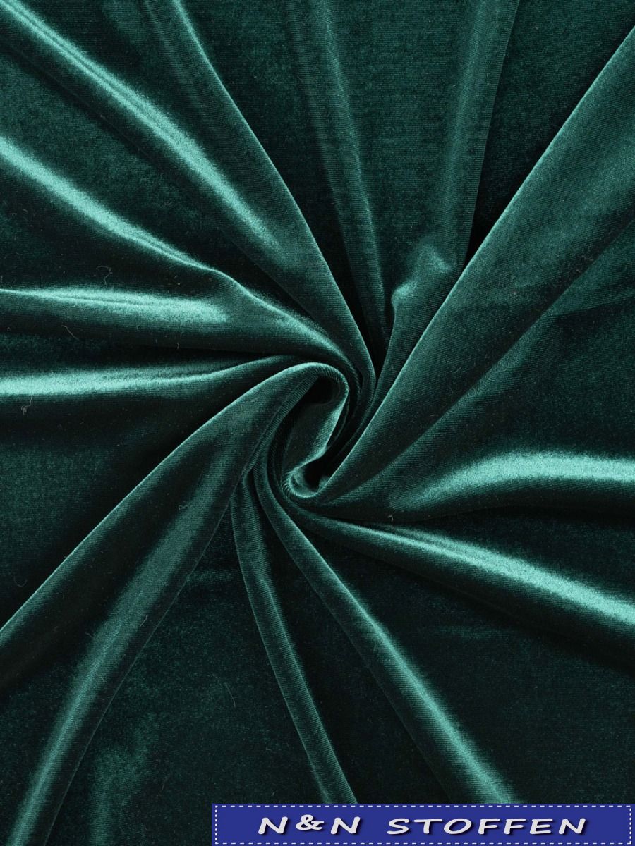 Velvet stretch Donkergroen is een soepele rekbare fluweelstof met een luxe glans.