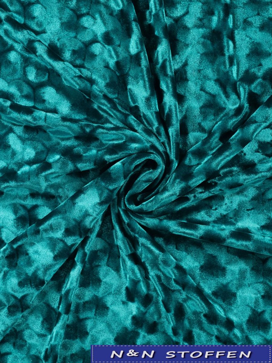 Velvet stretch embossed Petrol is een soepele rekbare fluweelstof met een luxe glans.