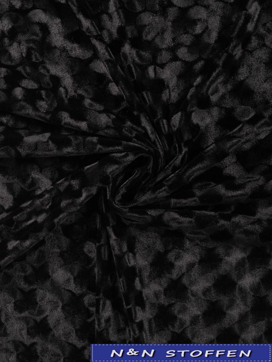 Velvet stretch embossed Zwart is een soepele rekbare fluweelstof met een luxe glans.
