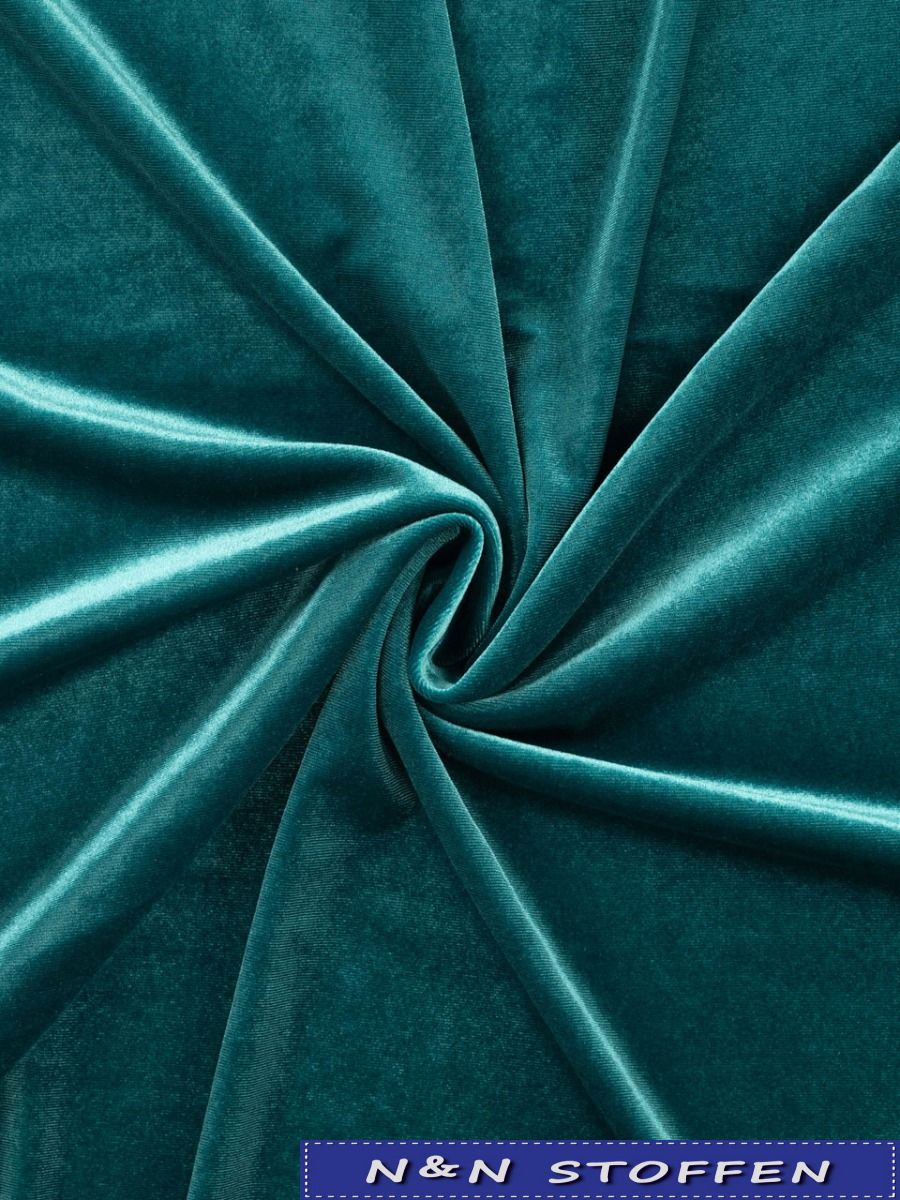 Velvet stretch Petrol is een soepele rekbare fluweelstof met een luxe glans.